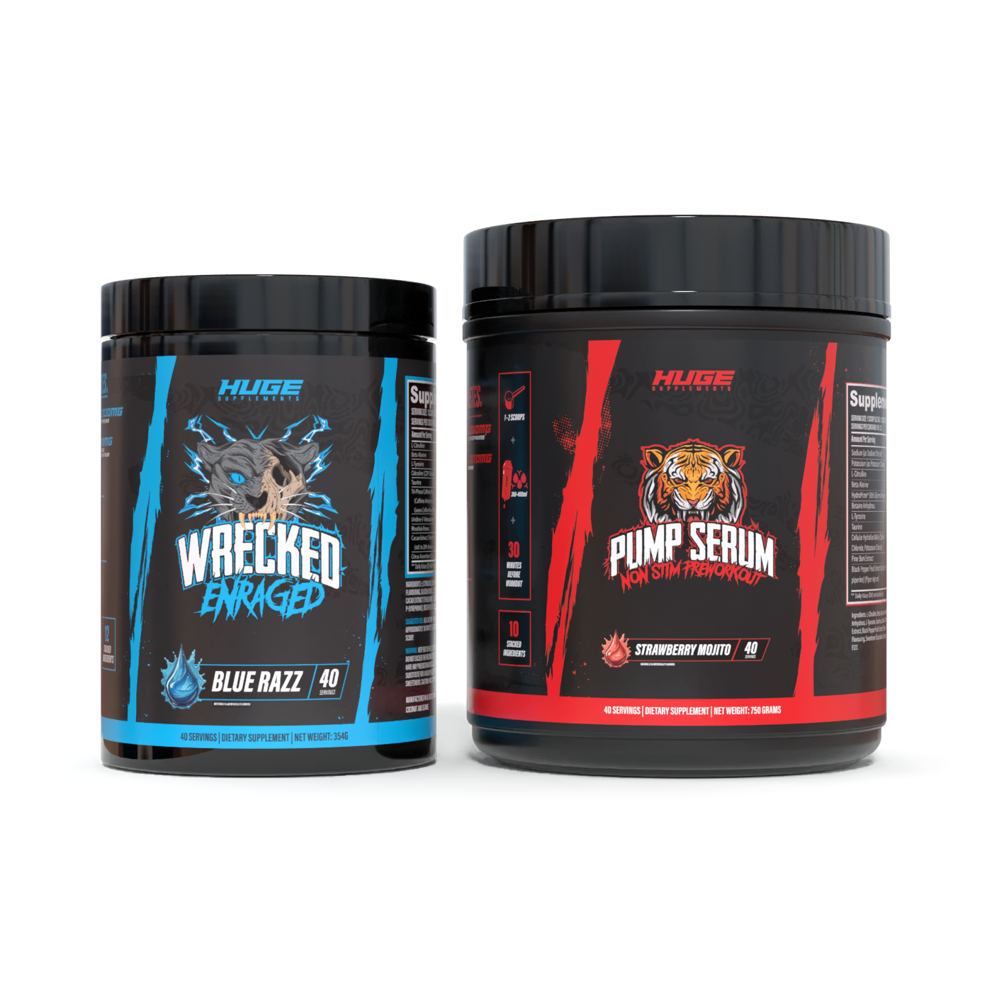 The Extreme Energy Stack consists of Wrecked Enraged and Pump Serum, two high-quality pre-workout supplements that could help you optimize workout intensity.